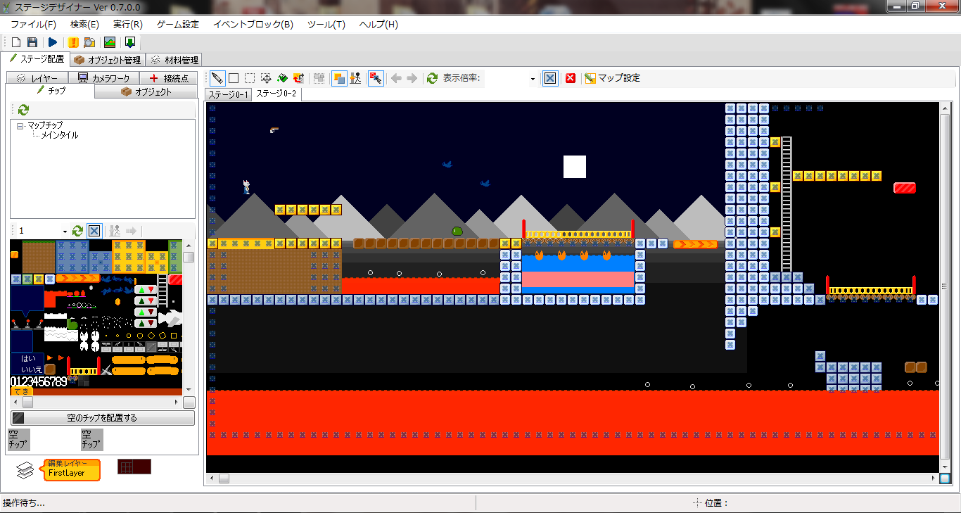 アクションゲーム制作ツール「ステージデザイナー(仮称)」の配布などを行っています。 (フリーソフト)